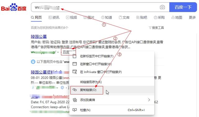 如下圖所示,通過site或者直接搜索您的網(wǎng)址,然后會(huì)得到網(wǎng)站的收錄頁面,在“百度快照”上面點(diǎn)鼠標(biāo)右鍵,復(fù)制鏈接即可。
